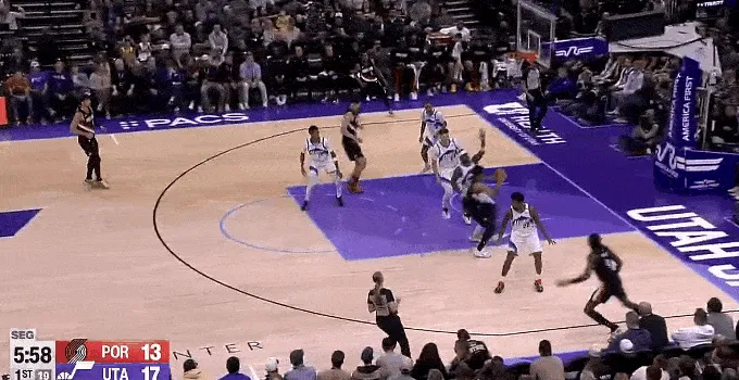 NBA常規(guī)賽,爵士對陣開拓者的下接比賽正在進(jìn)行中。