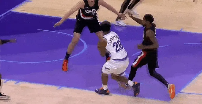 第一節(jié)比賽中,卡馬楊瀚森籃下接卡馬拉妙傳,拉妙迎著凱斯勒對抗強(qiáng)硬打進(jìn)拿到首分。傳迎
