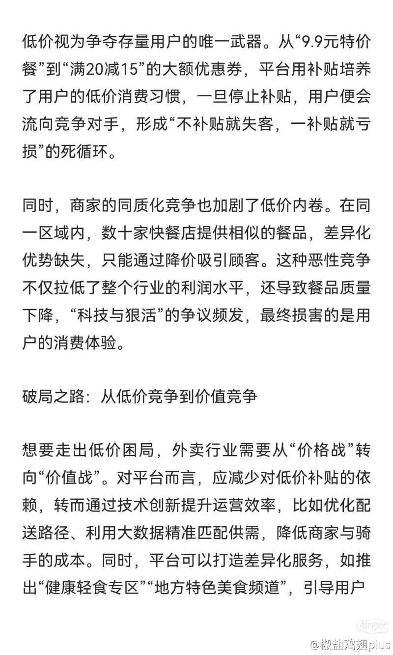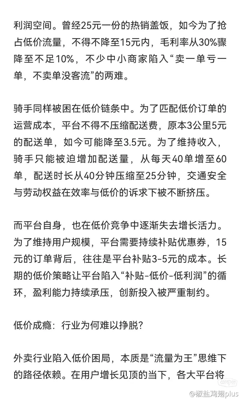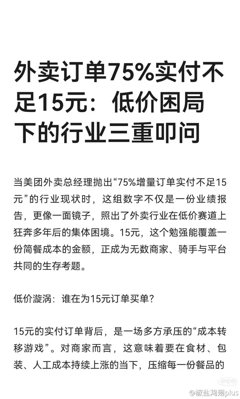 外賣(mài)訂單75%實(shí)付不足15元:低價(jià)困局下的外賣(mài)行由椒鹽雞翅plus 發(fā)表在步行街主干道 https://bbs.hupu.com/topic-daily