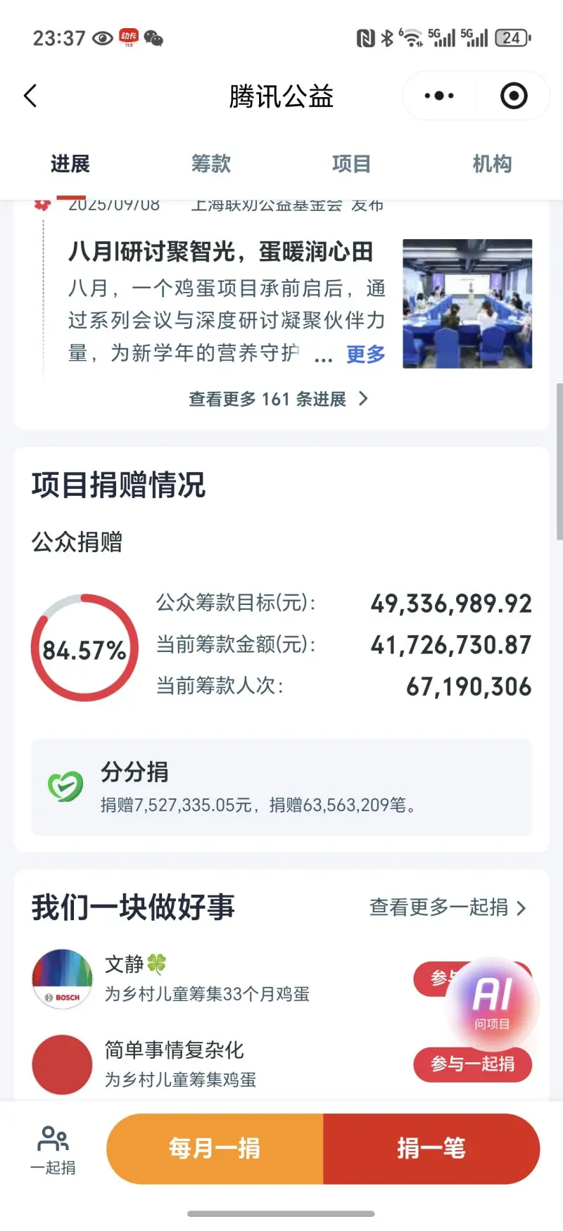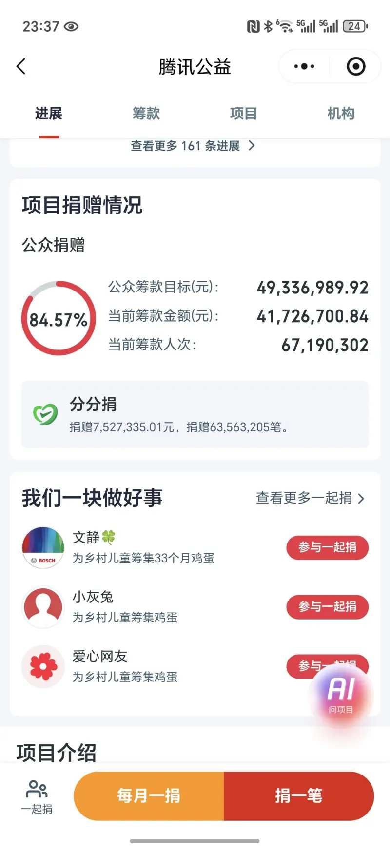 我嘗試了一下,騰訊公益的籌款金額是實時立馬更新的(用一個雞蛋的力量項目進行的測試),捐款了30塊后去刷新了一下,籌款金額增加了30元,巧合的概率不大,應(yīng)該就是我捐的30元。