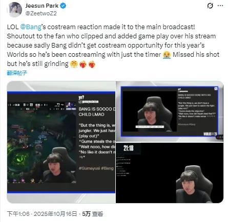 虎撲10月16日訊 LCK主持兼翻譯樸志宣發(fā)文,大意如下:
