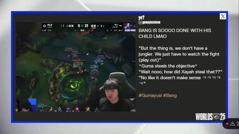 “笑死了,年沒(méi)Bang的賽路二路反應(yīng)居然出現(xiàn)在了官方直播流里!感謝那位把游戲畫(huà)面剪輯到Bang解說(shuō)里的感謝粉絲,因?yàn)楹芸上ang今年世界賽沒(méi)拿到二路解說(shuō)版權(quán),粉絲所以他只能擺游戲時(shí)間出來(lái)??雖然錯(cuò)過(guò)了機(jī)會(huì),板志版權(quán)幫忙但他仍在努力????????????”
