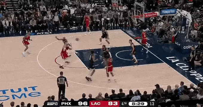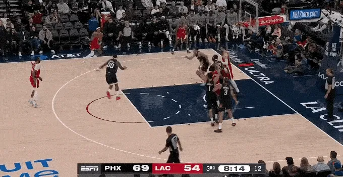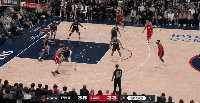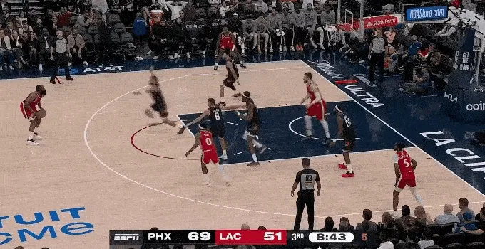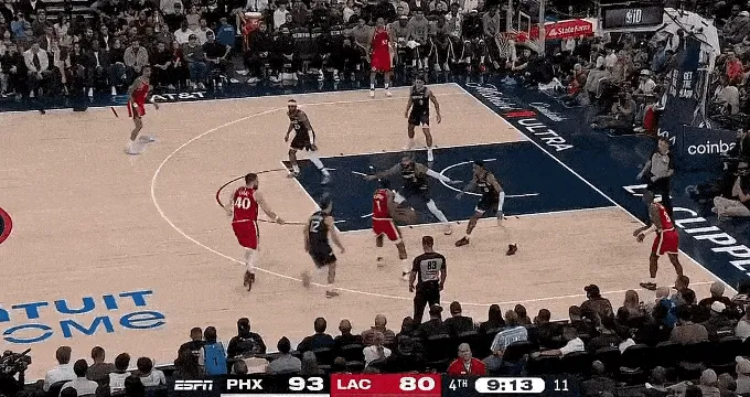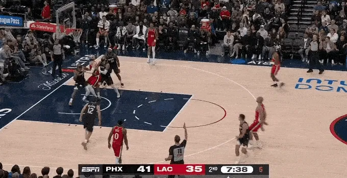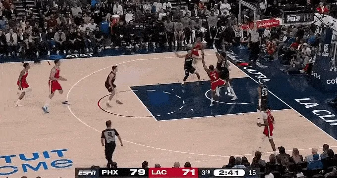 太陽(yáng)今天投出了 38 投 16 中,42% 的三分命中率,大家不用奇怪,快船前九場(chǎng),場(chǎng)均讓對(duì)方三分命中率高達(dá) 39.3%,聯(lián)盟倒數(shù)第四。