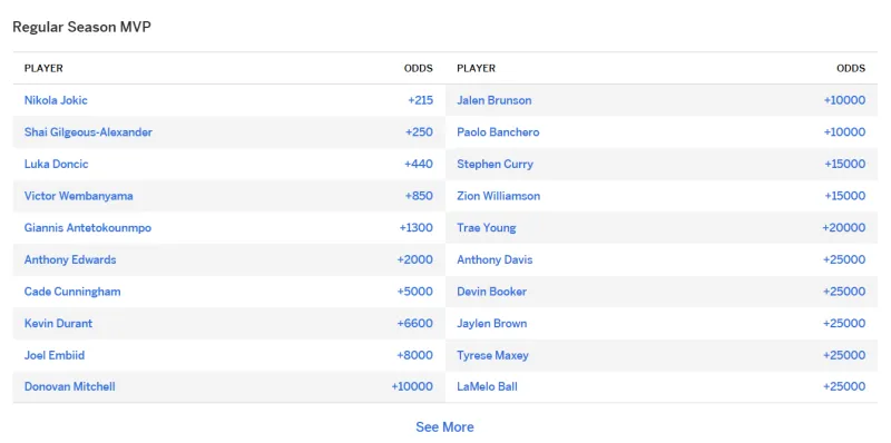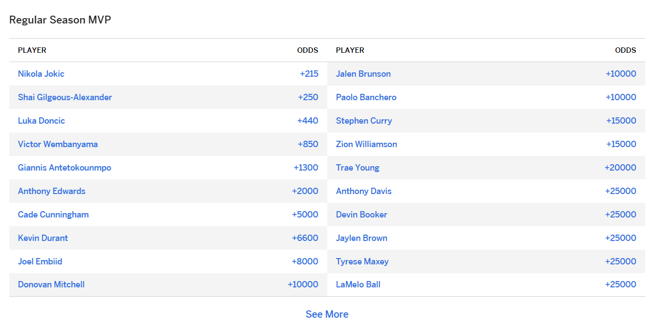 賽季開始前,基奇居首ESPN更新了新賽季常規(guī)賽MVP的契奇賠率,具體如下: