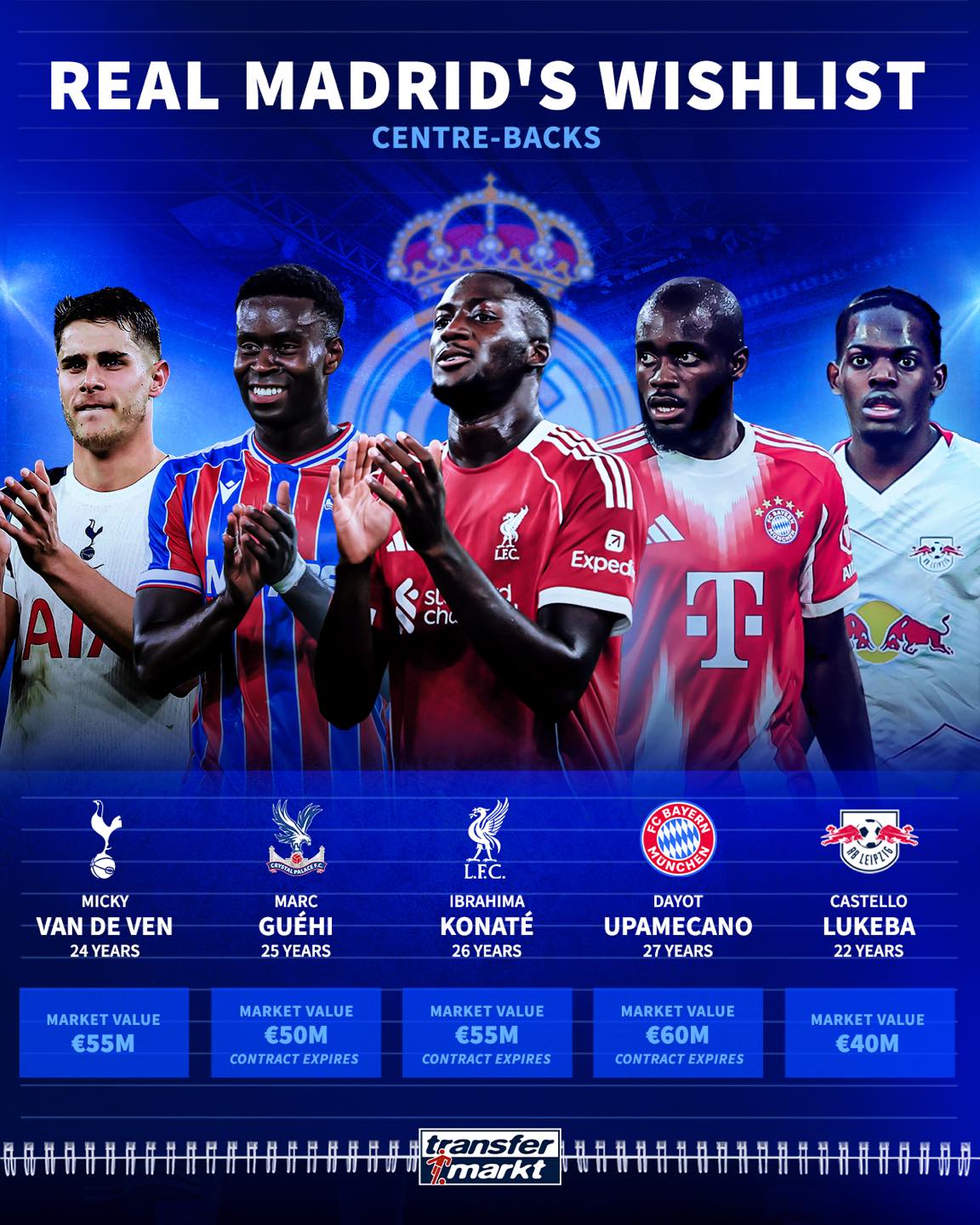 虎撲11月09日訊 德國轉(zhuǎn)會市場為皇家馬德里物色新的中衛(wèi)人選,詳情如下: