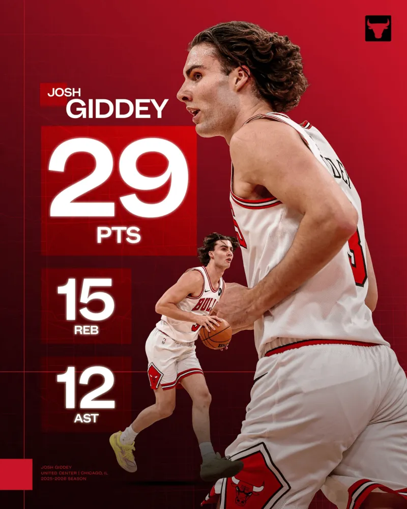 本場比賽,公牛球員約什-吉迪出戰(zhàn)37分鐘,星否19投10中,其中三分球4投2中,罰球8投7中,得到29分15籃板12助攻1搶斷。
