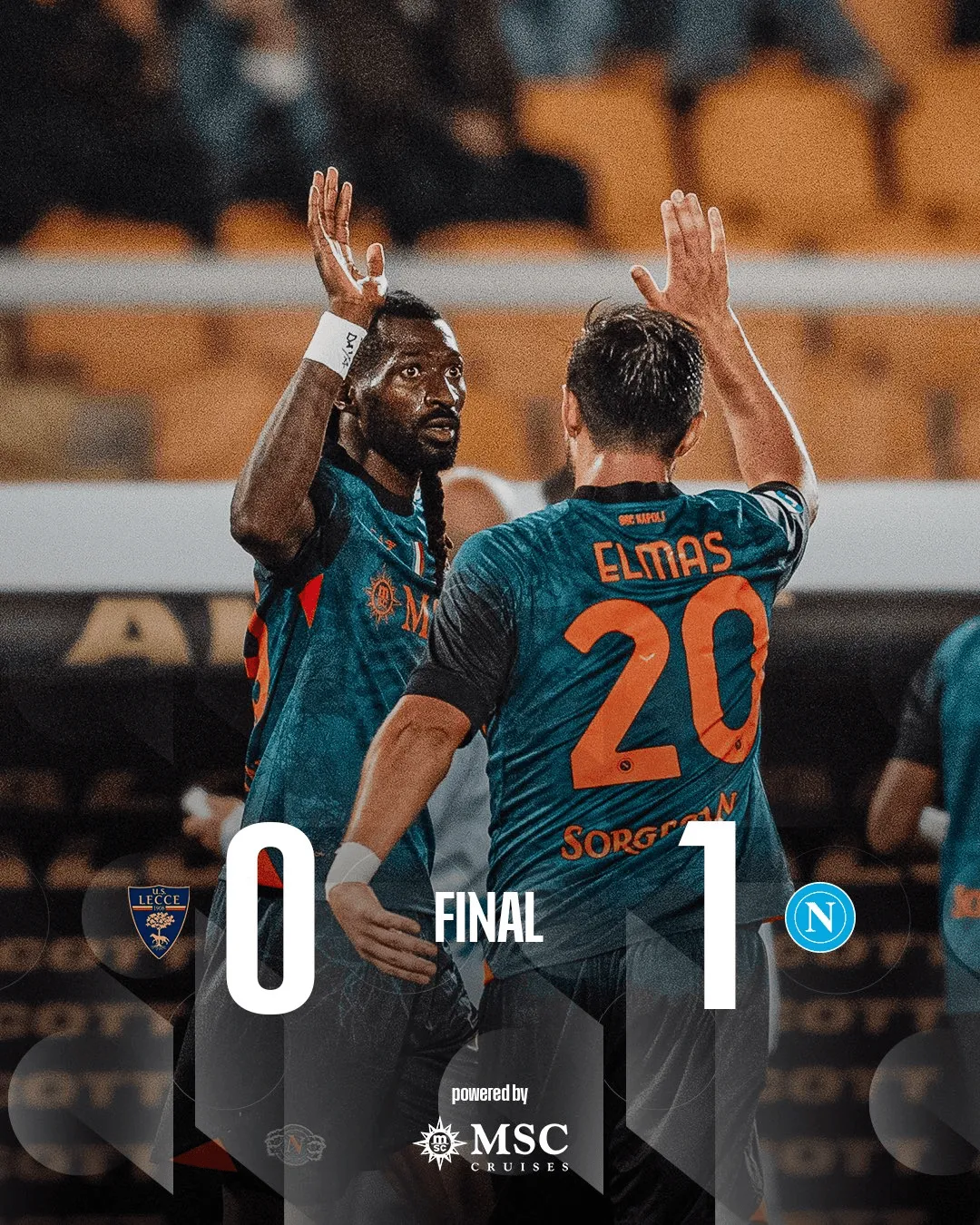 之后的時間里,那不勒斯守住了萊切的攻勢,1-0拿下比賽。