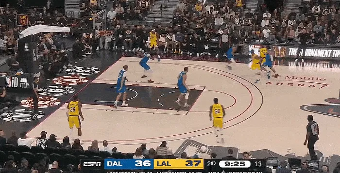 NBA季前賽,湖人對陣獨(dú)行俠的特底投進(jìn)比賽正在進(jìn)行中。