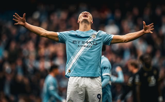 賽后,開度哈蘭德社媒曬照慶祝本場勝利并配文:伊蒂哈德。助攻照慶祝勝??????
