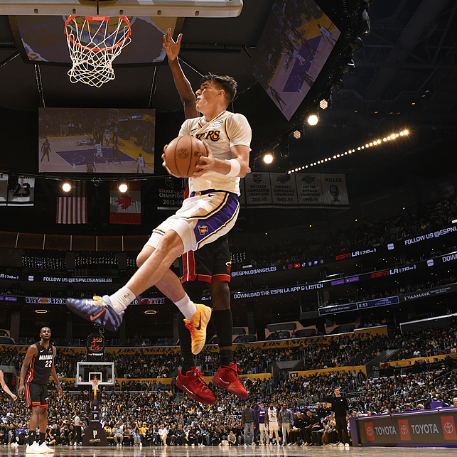 轉(zhuǎn)折點(diǎn)發(fā)生在10月30日對陣森林狼。那天晚上,我仿佛回到了大學(xué)時期,11投10中,三分6中5,砍下27分8籃板2助攻1搶斷1蓋帽,填滿了數(shù)據(jù)欄。我成為湖人隊(duì)史第一個單場得到25分+5籃板+5三分并且命中率90%+ 的球員。只能聽到森林狼觀眾席大聲喊道:”那個12號是誰!!“連因傷坐在場下觀戰(zhàn)的安東尼-愛德華茲都驚呼:“這也是我想問的,我不知道這哥們是誰!!”