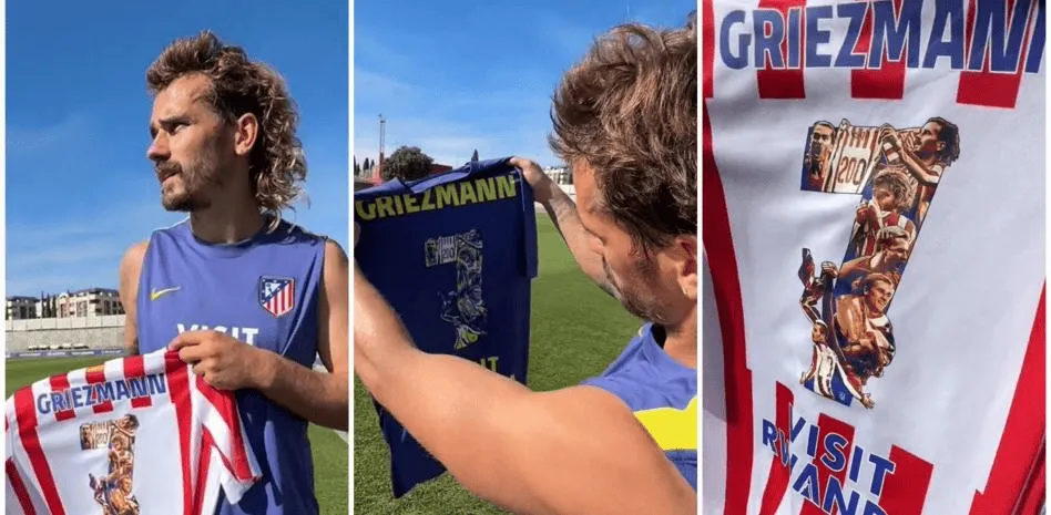 現(xiàn)在,馬德里競技將推出一款基于第一和第二客場球衣的特殊設(shè)計,上面印有球員標(biāo)志性的7號,該號碼由他在馬競?cè)〉玫某删椭凶罹叽硇缘膱D像組成。俱樂部分享了一段視頻,其中格列茲曼親自向鏡頭展示了這些紀(jì)念球衣,球迷們將可以在俱樂部的官方商店購買這些商品。在視頻中,希門尼斯也出現(xiàn)了,他向格列茲曼問道:"如果我買了,你會給我簽名嗎?" 格列茲曼笑著回答道:"當(dāng)然!"