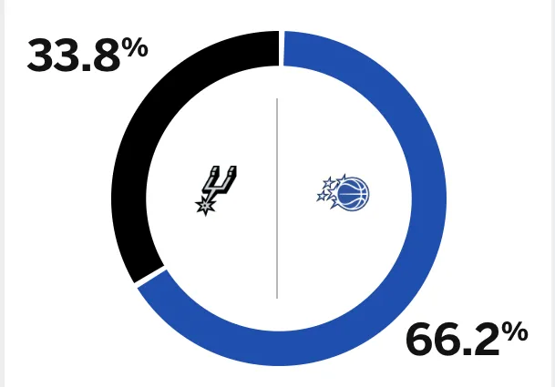 截止目前,術(shù)馬術(shù)勝馬刺取得16勝6負(fù),魔術(shù)取得13勝8負(fù)。