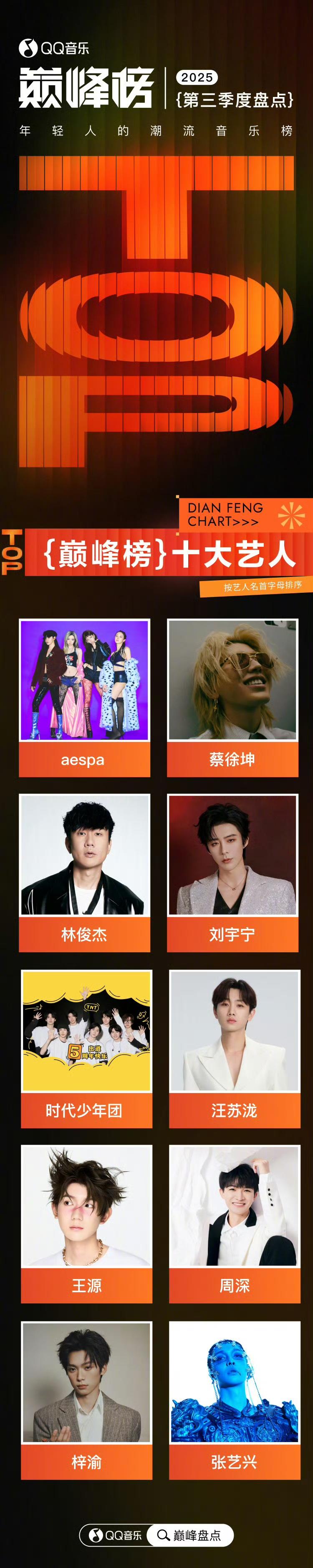 aespa、蔡徐坤、板Q布第榜單林俊杰、季度金曲劉宇寧、時代少年團、汪蘇瀧、王源、周深、梓渝、張藝興