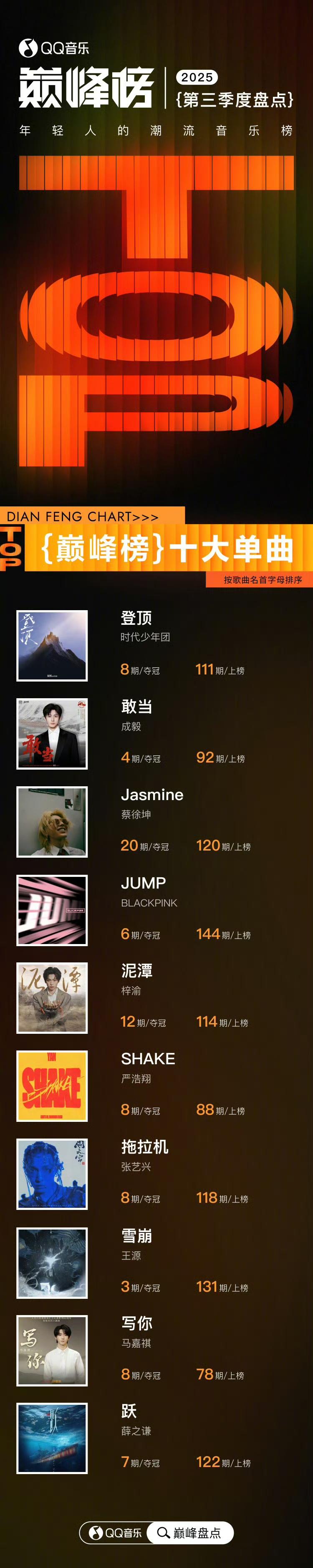 [流言板]QQ音樂公布2025第三季度十大藝人、十大金曲榜單