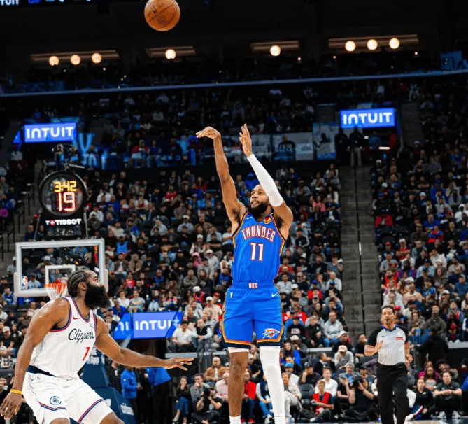 本場比賽,雷霆球員以賽亞-喬出戰(zhàn)21分鐘,投籃12中7、三分10中6得到22分3籃板。