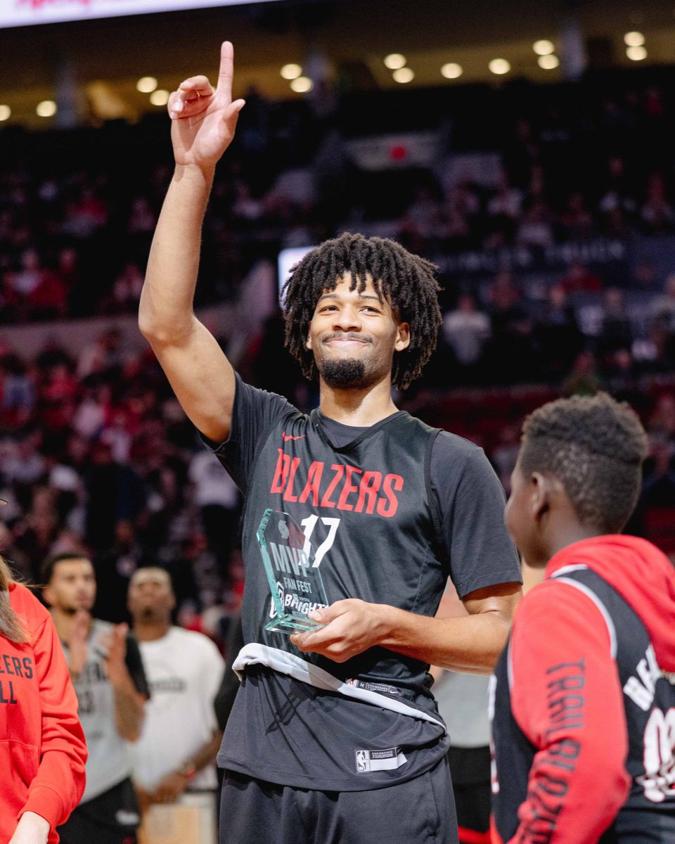 虎撲10月05日訊 今日,開拓者社媒曬出謝登-夏普在球迷日的社媒個人照片,并配文: