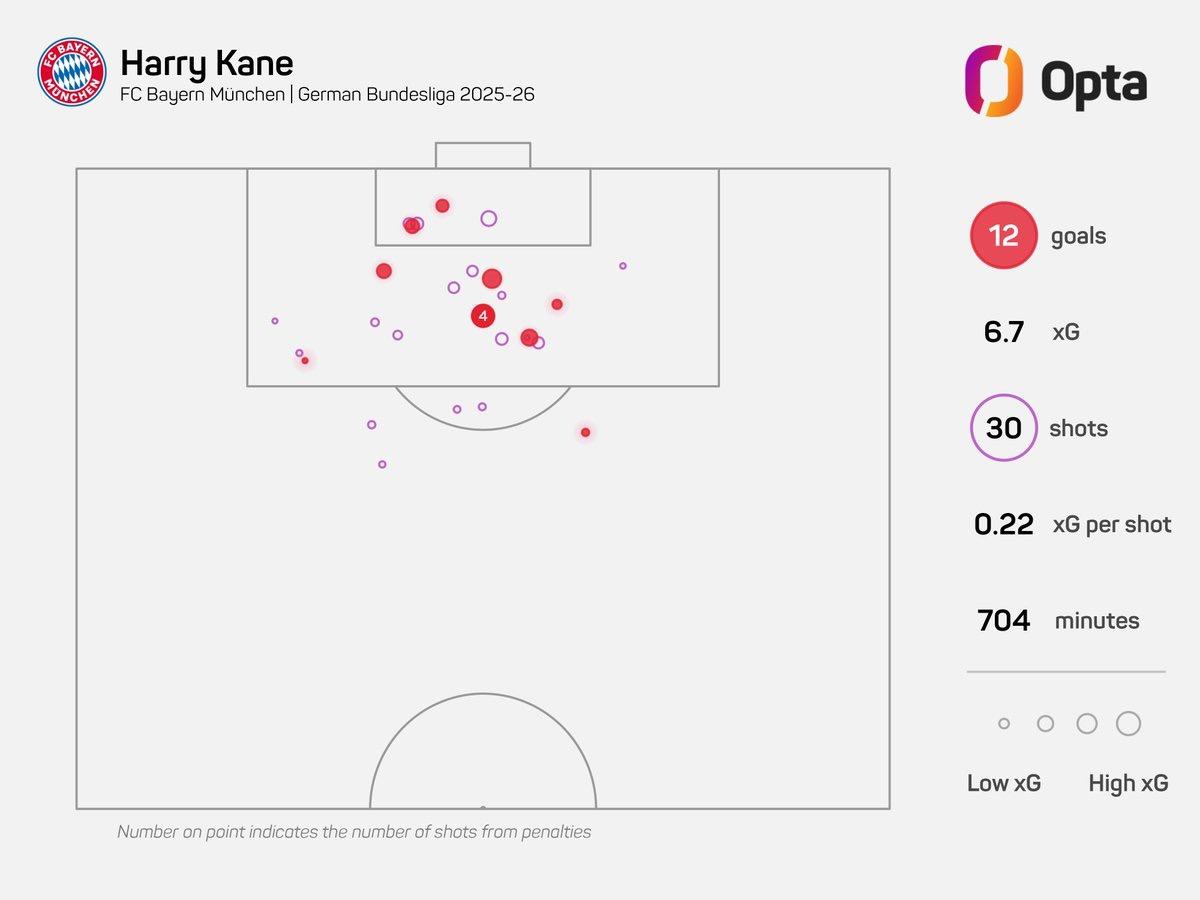 [流言板]超高水平表現(xiàn)!凱恩德甲預(yù)期進(jìn)球僅為6.7球,實(shí)則已打入12球