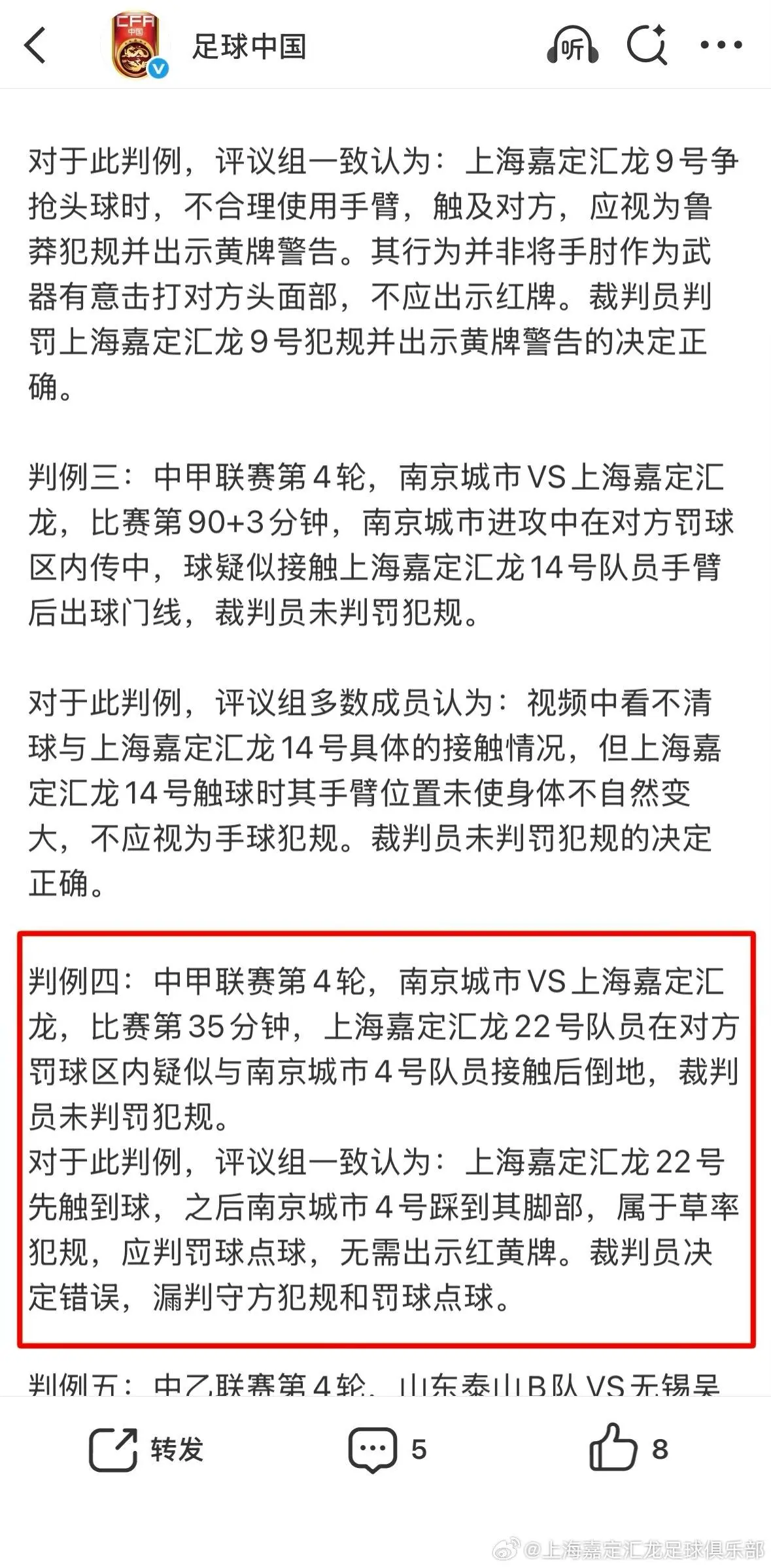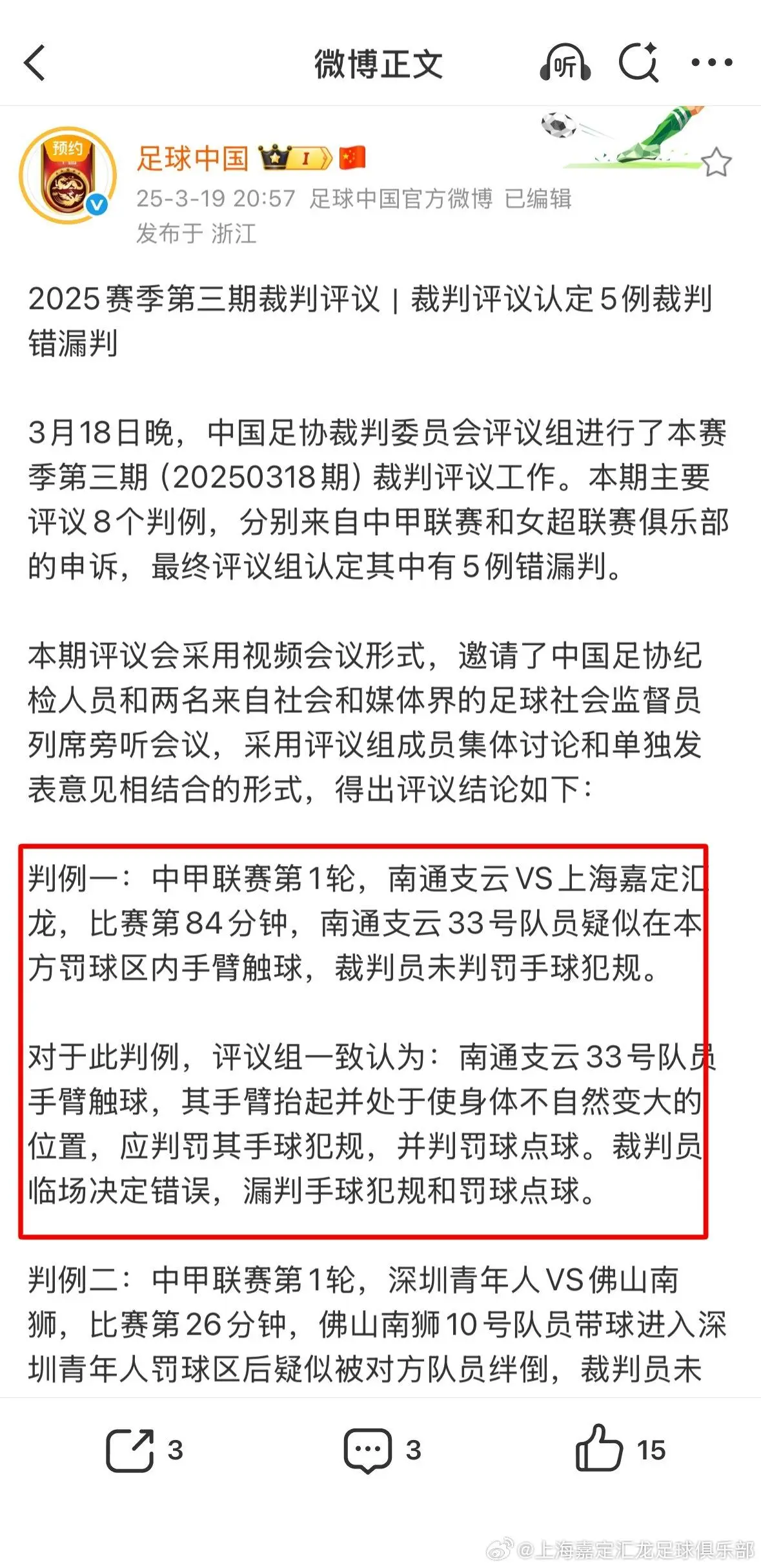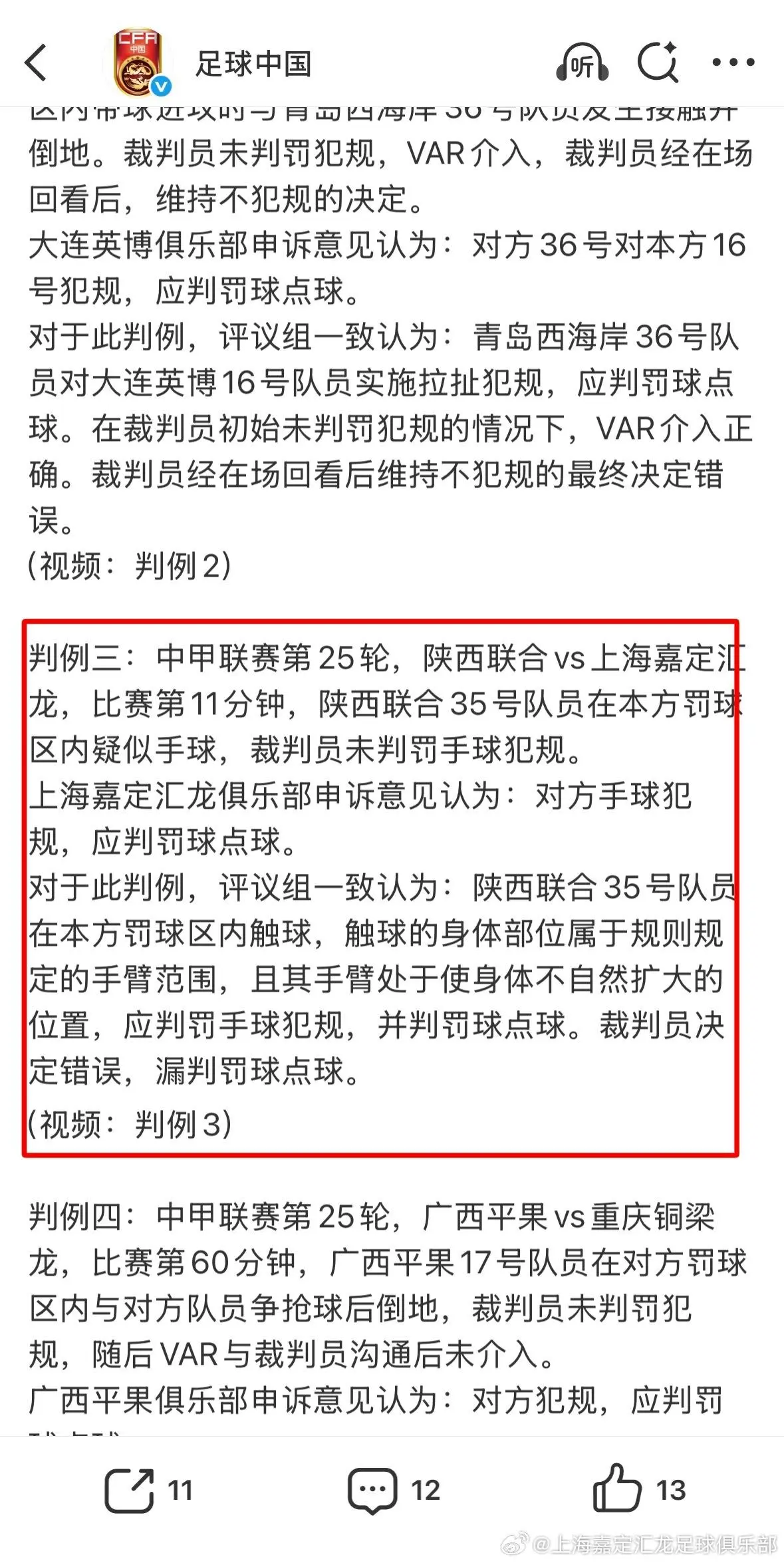 本賽季中甲聯(lián)賽截止上輪,個(gè)點(diǎn)經(jīng)中國足協(xié)裁委會(huì)評(píng)議組認(rèn)定,流言龍官共三次漏判給上海嘉定匯龍點(diǎn)球。板嘉本隊(duì)被漏 ???