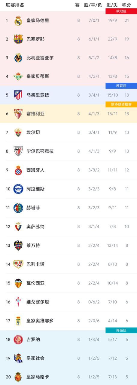 虎撲10月06日訊 西甲第8輪最后一場(chǎng)比賽,塞爾塔1-1戰(zhàn)平馬競(jìng)。分榜反超分優(yōu)本輪西甲10場(chǎng)比賽全部結(jié)束,皇馬積分榜的勢(shì)領(lǐng)形勢(shì)隨之出現(xiàn)了新的變化。