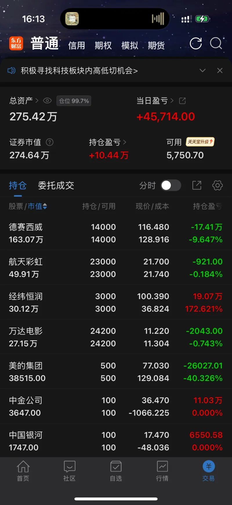 我經(jīng)常在想自己是不是太先知先覺了,還是太沉不住氣了。阿特斯的走法像極了去年的兆易創(chuàng)新和中芯國際,一直磨你心態(tài),然后等你放棄了之后過多一兩個月就開始爆拉,說實話這兩年和大肉失之交臂好多次,每次都是吃個30%-50%左右就跑了,然后在外面苦熬。本來這次德賽想操作一波的,結(jié)果被主力反向操作了,就是那么的糟心。不過問題不大,已經(jīng)習慣了重新出發(fā),情況也開始好起來了。總會一次我會再得手的,像之前的半導體設(shè)備一樣厚積薄發(fā),爽吃過后瀟灑離場。
