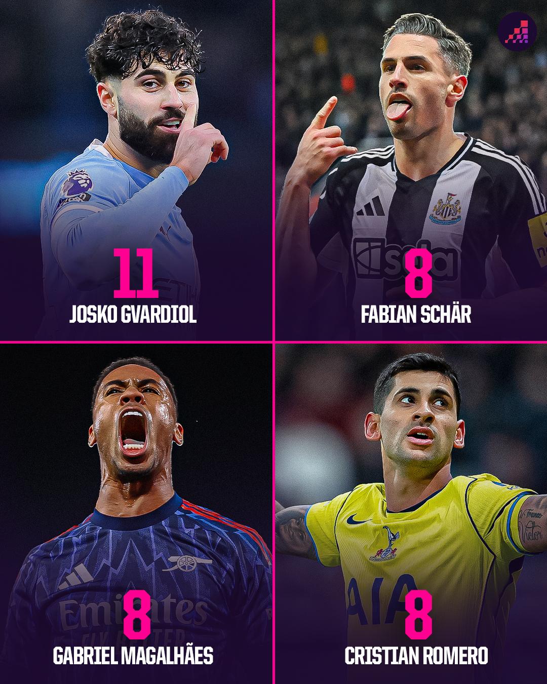 Opta數(shù)據(jù)統(tǒng)計(jì),曼城自2023年8月首秀以來,格瓦迪奧爾已在英超打進(jìn)11球,同期排名英超后衛(wèi)中第一。