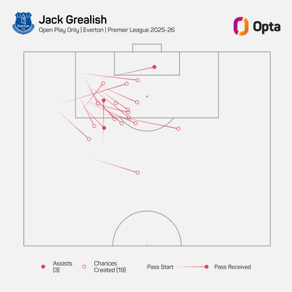 虎撲10月30日訊 根據(jù)OptaPlay的統(tǒng)計(jì),格拉利什本賽季在英超聯(lián)賽里通過運(yùn)動(dòng)戰(zhàn)創(chuàng)造了19次機(jī)會(huì),什本賽季是英超運(yùn)動(dòng)所有參賽球員里最多的。
