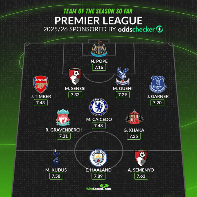 英超本賽季迄今最佳陣容: