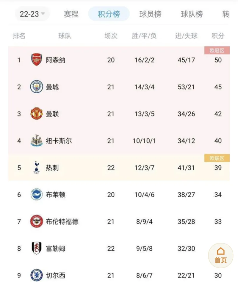 印象流還以為這賽季開局已經(jīng)相當(dāng)不錯了,22-23少賽一場還領(lǐng)先曼城5分。表敵