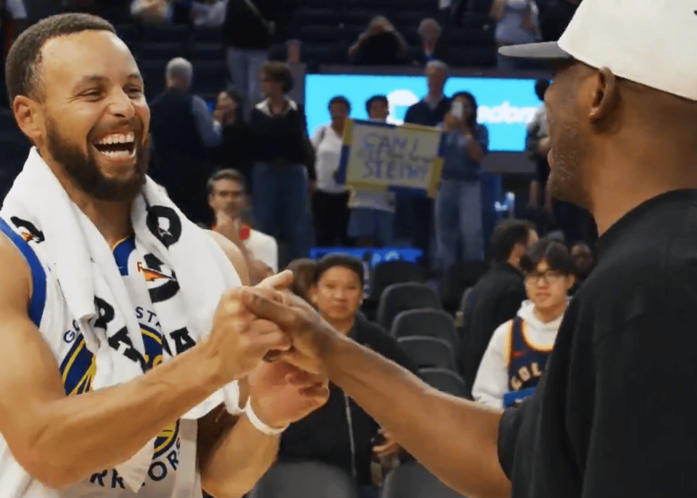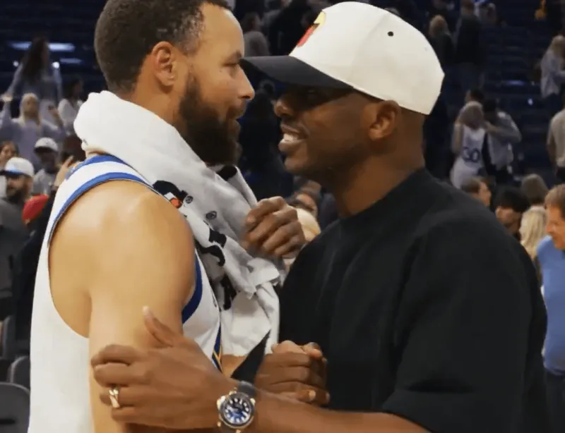 賽后,心庫(kù)勇士球星庫(kù)里和快船球星保羅互相擁抱致意。擁抱