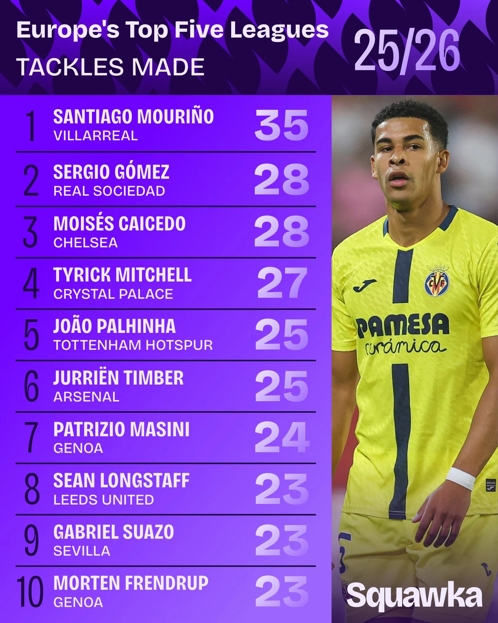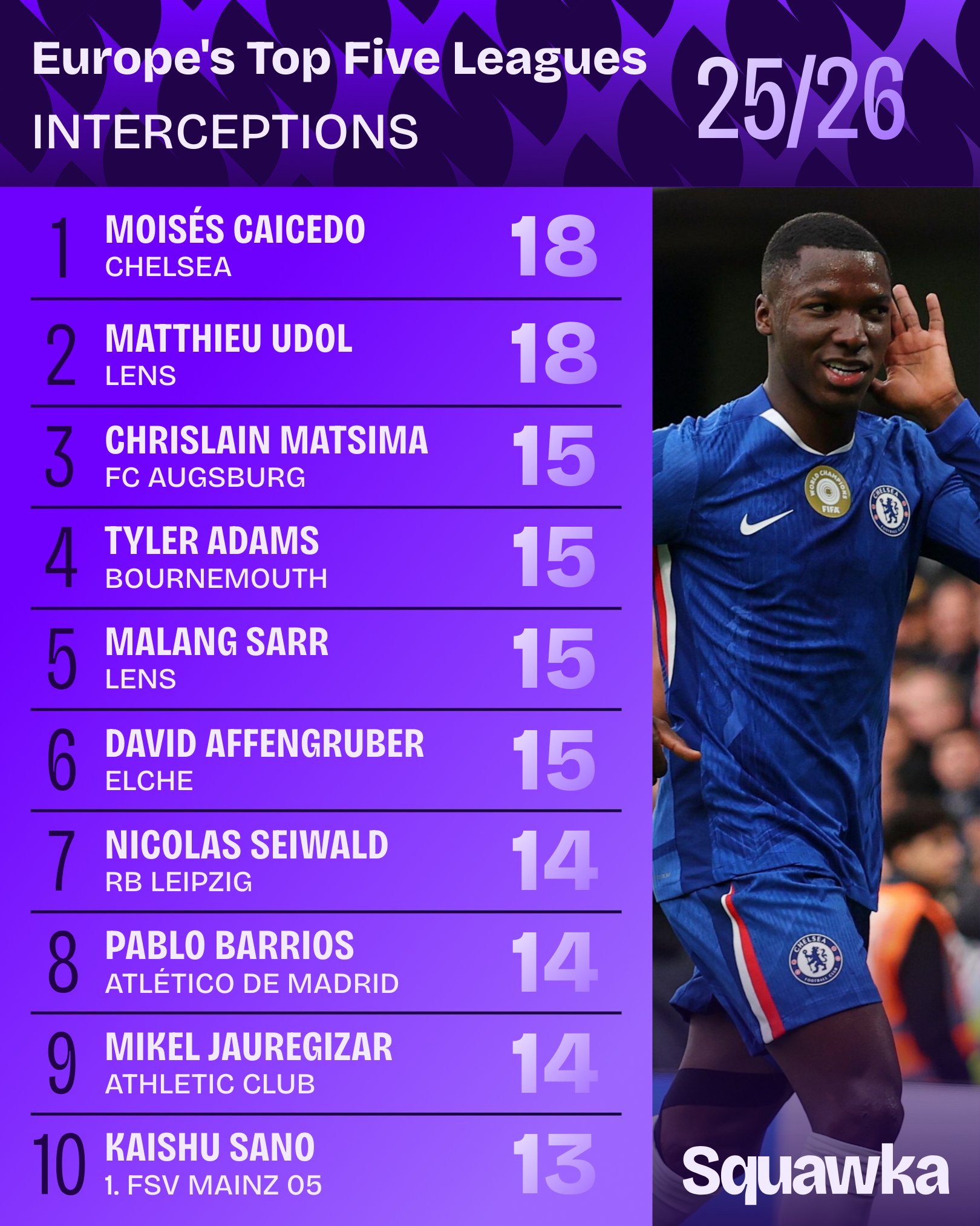 來(lái)源:X虎撲10月16日訊 Squawka數(shù)據(jù)統(tǒng)計(jì)本賽季至今五大聯(lián)賽攔截榜,凱塞多與朗斯后衛(wèi)尤杜18次并列第一。流言聯(lián)賽攔截