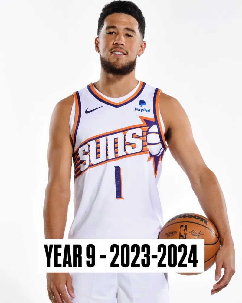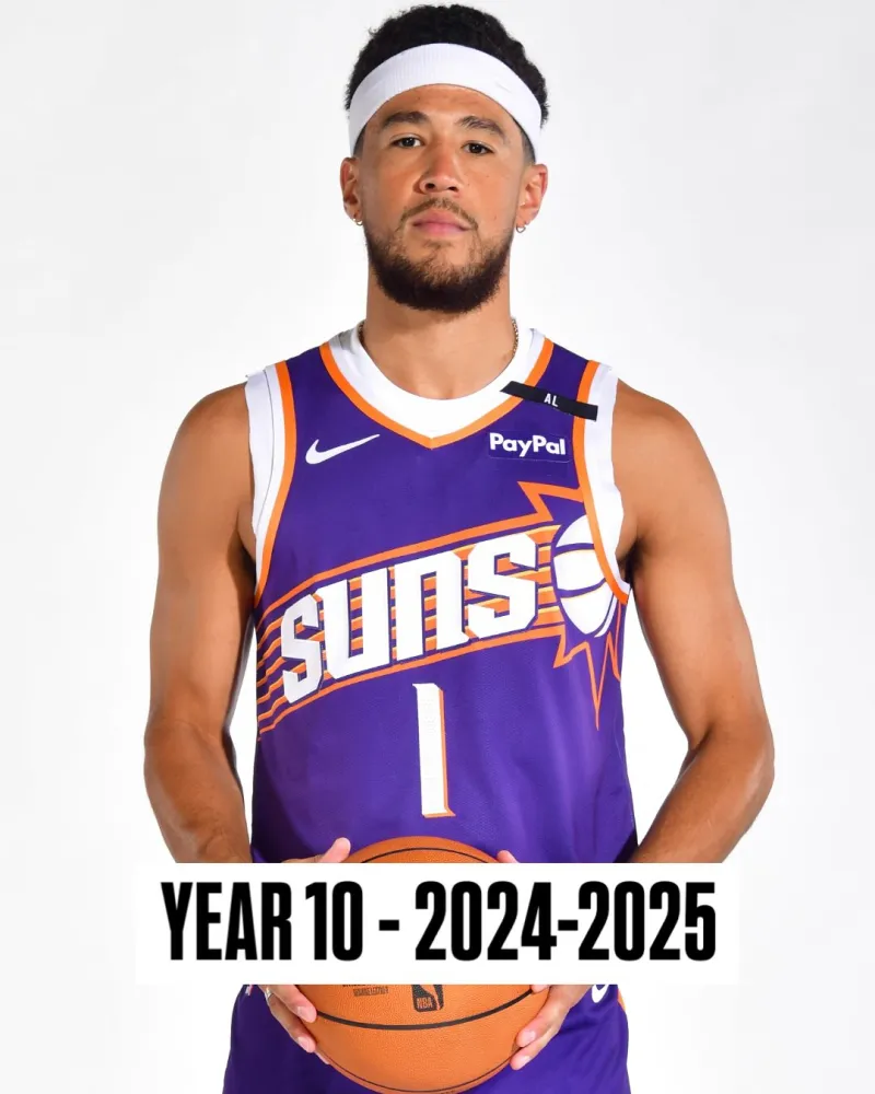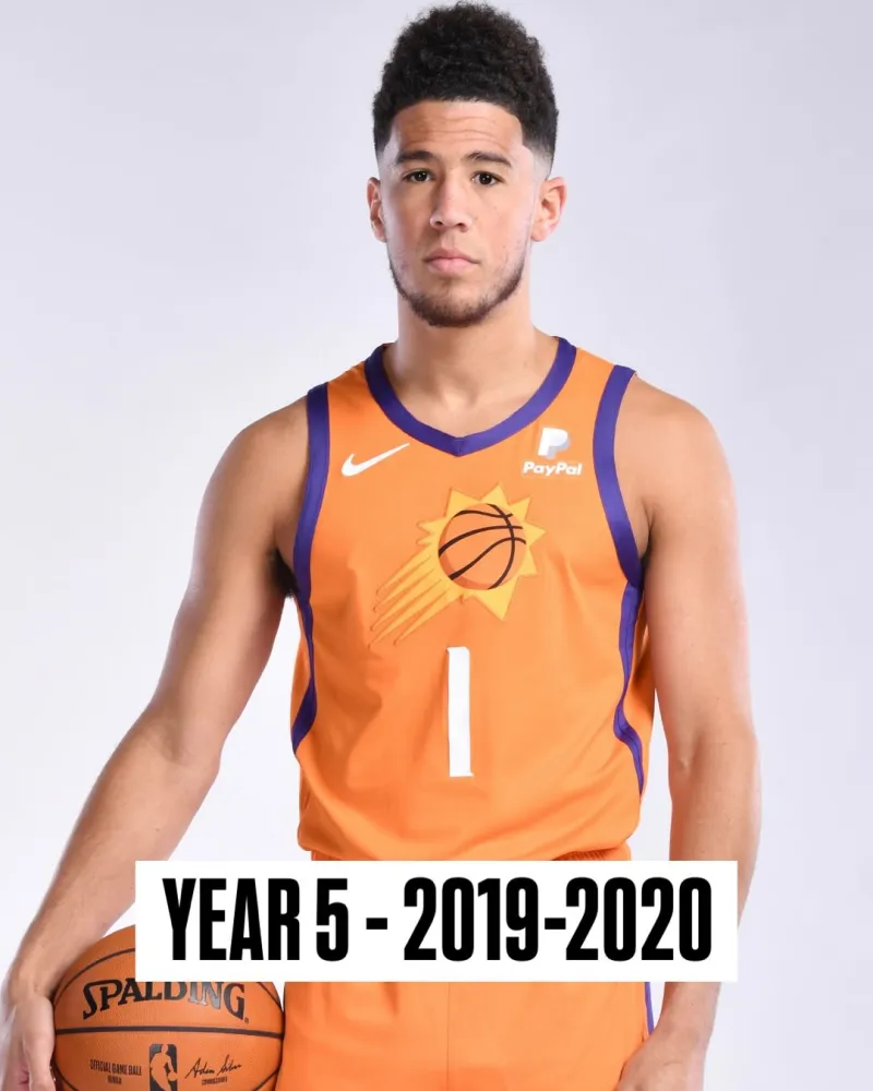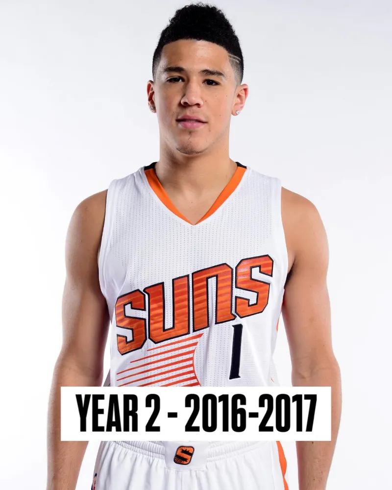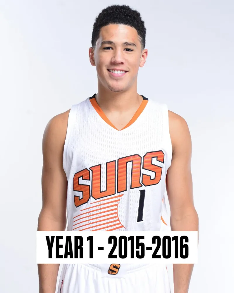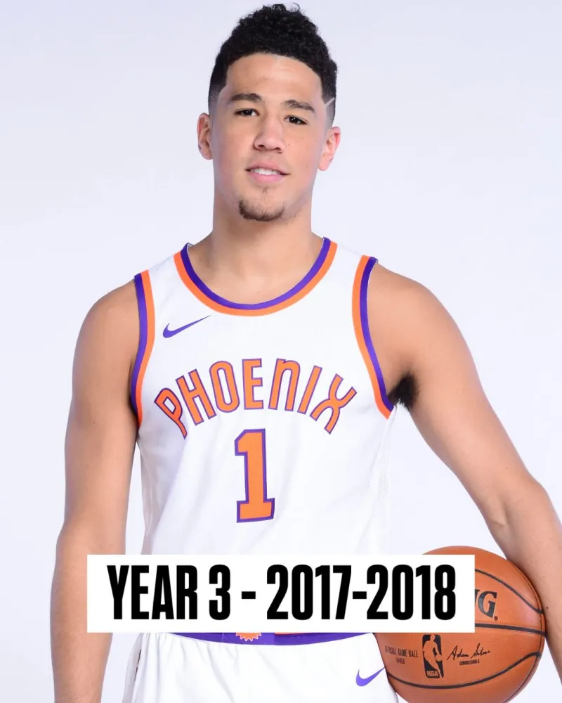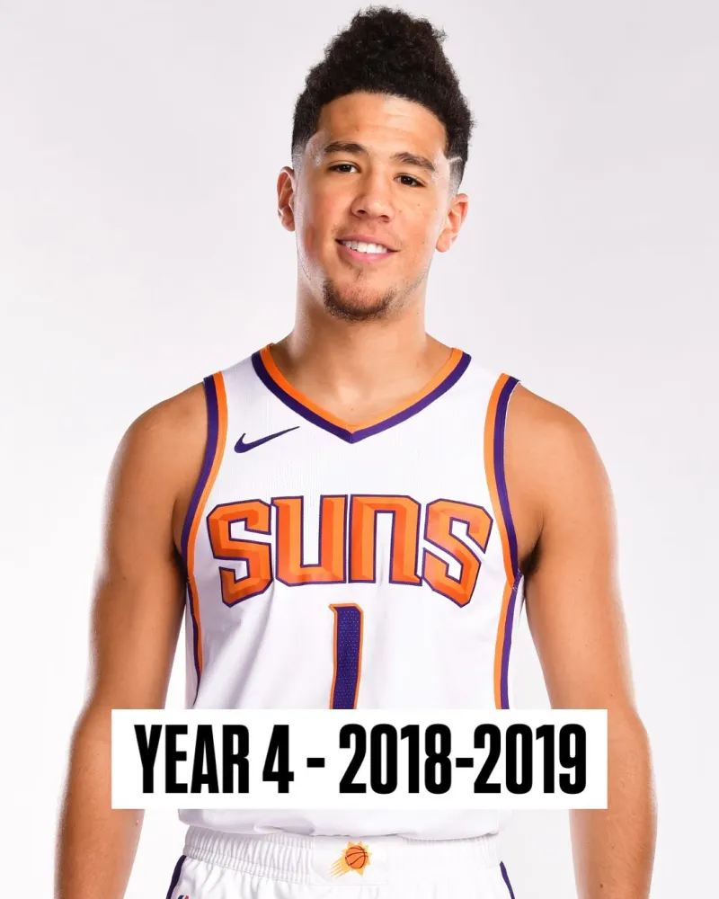 虎撲09月27日訊 NBA官方更新Ins,曬出一組太陽球員德文-布克歷年來的曬德定妝照與球迷分享。