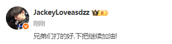 [流言板]挺進四強后,JackeyLove發(fā)文:兄弟們打的好,下把繼續(xù)加油
