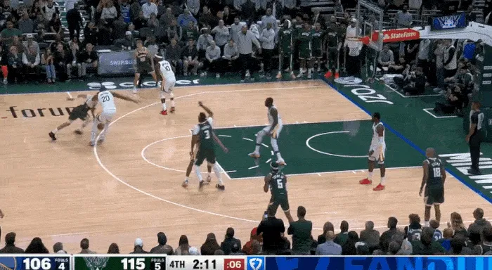 NBA常規(guī)賽,勇士對陣雄鹿的可擋比賽正在進行中。