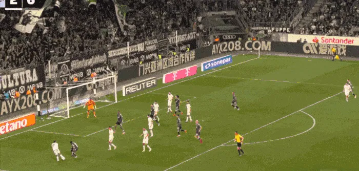 此后的比賽法蘭克福降低了比賽強(qiáng)度,門興格拉德巴赫也開(kāi)始通過(guò)換人調(diào)整狀態(tài)。從第72分鐘開(kāi)始,門興由卡斯特羅普、塔巴科維奇、恩格爾哈特和拉諾斯連入四球,最終的比分也定格在4-6。