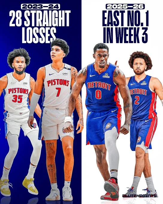 虎撲11月09日訊 今日,美媒ClutchPoints更新動態(tài),曬出活塞的崛起之路: