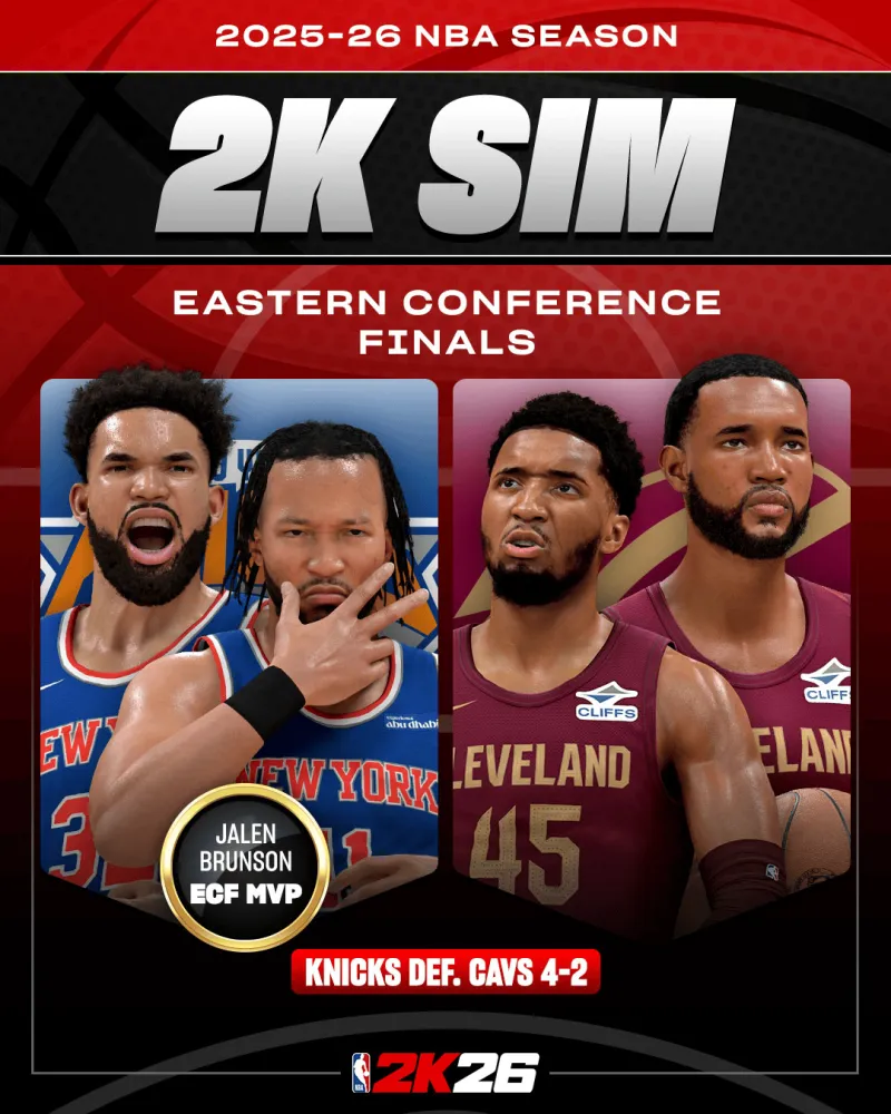 其中,賽季賽中2K模擬顯示,總決雷霆與尼克斯將在總決賽中對(duì)決。對(duì)決