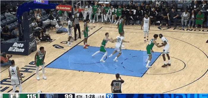 虎撲10月09日訊 NBA季前賽,凱爾特人對(duì)陣灰熊的底線彈球比賽正在進(jìn)行中。