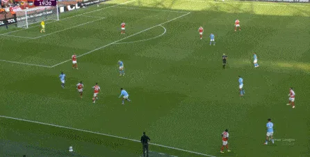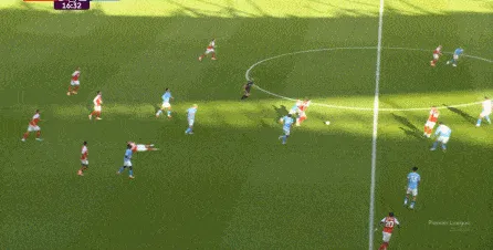 所以在這個進球帶來的激勵效果之下,曼城全隊信心大增,在這之后打出了不錯的強度,形成了對阿森納的限制和對球權的掌控,雖然沒有進一步打出進攻的機會,但他們讓阿森納的下一次進攻,直至第17分鐘才出現(xiàn):