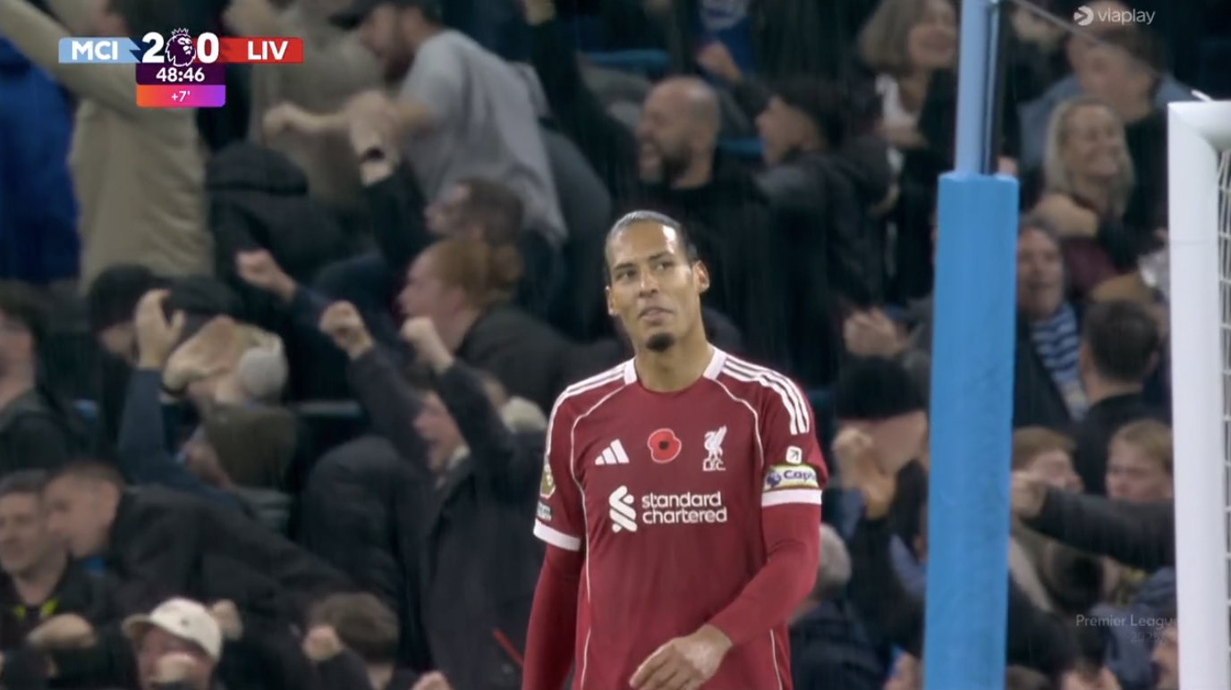 虎撲11月10日訊 北京時間2025年11月10日,英超焦點戰(zhàn)曼城vs利物浦上半場比賽中,進球解圍范戴克攻防兩端皆運氣不佳。踢呲
