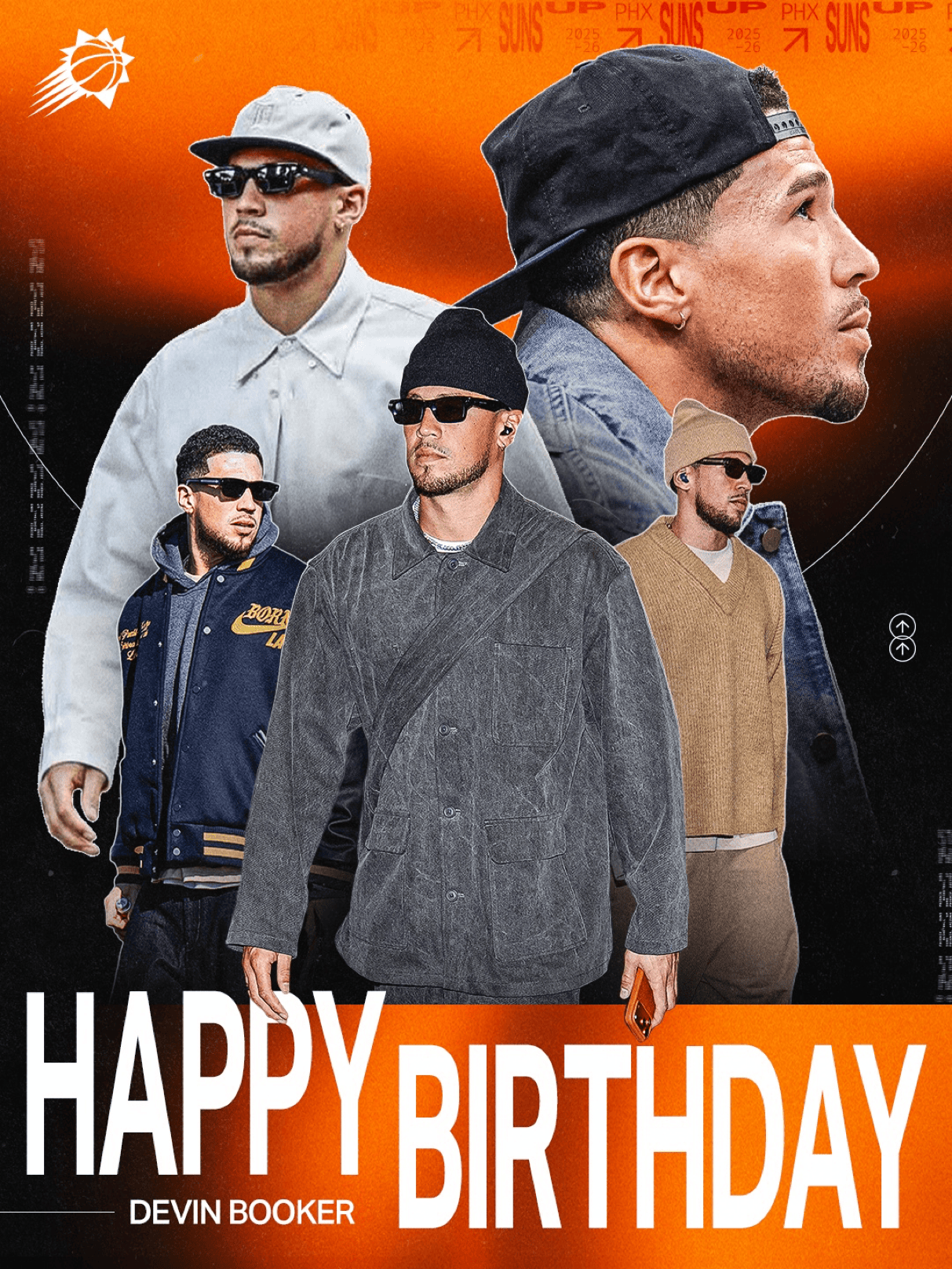 虎撲10月31日訊 太陽官媒更新了X,曬出了一張?zhí)柷騿T德文-布克的快樂克穿照片并為其獻上生日祝福。