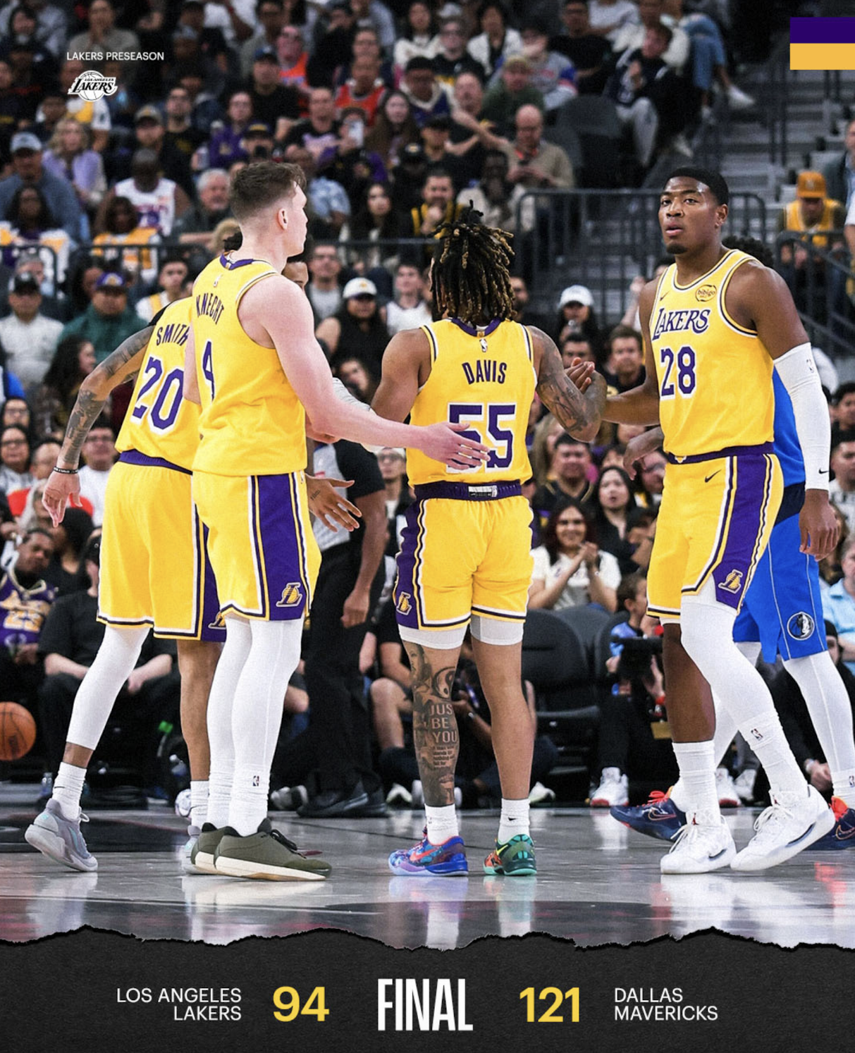 虎撲10月16日訊 NBA季前賽,洛杉磯湖人隊(duì)以94-121不敵達(dá)拉斯獨(dú)行俠隊(duì)。場結(jié)