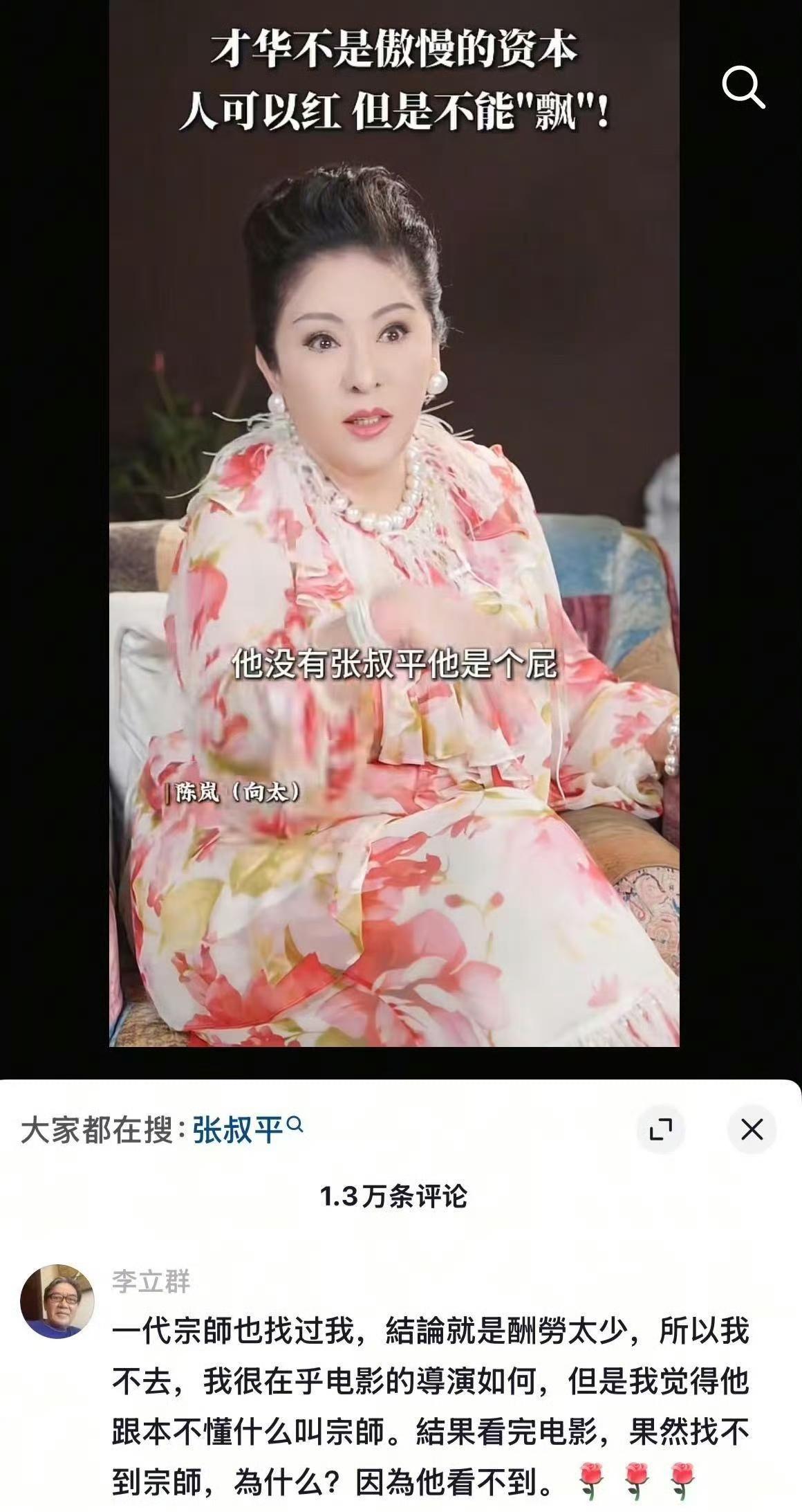隨后演員李立群在評論區(qū)表示:“一代宗師也找過我,什叫酬勞太少我沒去,宗師王家衛(wèi)根本不懂什么叫宗師,流言立群看完電影,板演不懂電影里也找不到宗師,員李因為他看不到。開噴”