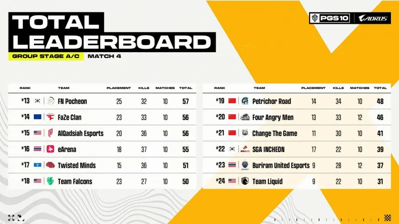 [賽后]PGS10小組賽收官:TE領(lǐng)跑,賽后收官TWIS壓線晉級,組賽FLC、領(lǐng)跑PeRo出局由虎撲游戲電競資訊 發(fā)表在絕地求生 https://bbs.hupu.com/pubg