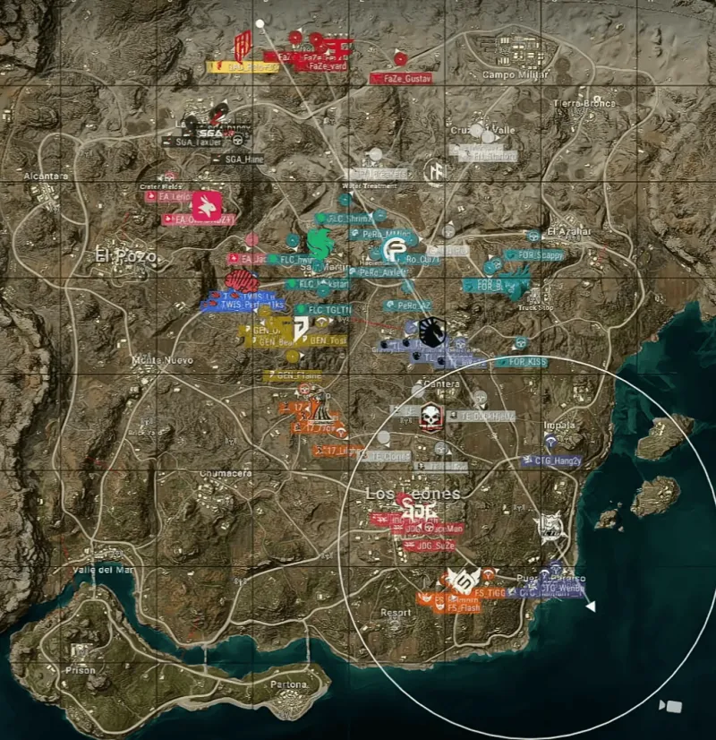 階段6剩余8隊,TWIS進(jìn)圈路上率先被淘汰,F(xiàn)LC炸掉SGA,但FLC隨后被FaZe打掉兩人,隨后EA被FLC打掉,但FLC也被打掉。