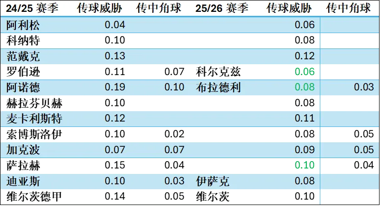 厄德高和阿諾德是阿森納和利物浦上賽季的組織核心,也分別是兩隊(duì)在向前傳球和帶球推進(jìn)方面貢獻(xiàn)最多的球員。本賽季厄德高的傷病和阿諾德的離隊(duì)無(wú)疑給兩隊(duì)教練出了難題。同時(shí)兩隊(duì)的核心成員又分別遇到了傷病和老化的問(wèn)題,再加上新援的融合,這些都需要調(diào)整戰(zhàn)術(shù)和職責(zé)分配加以應(yīng)對(duì)。