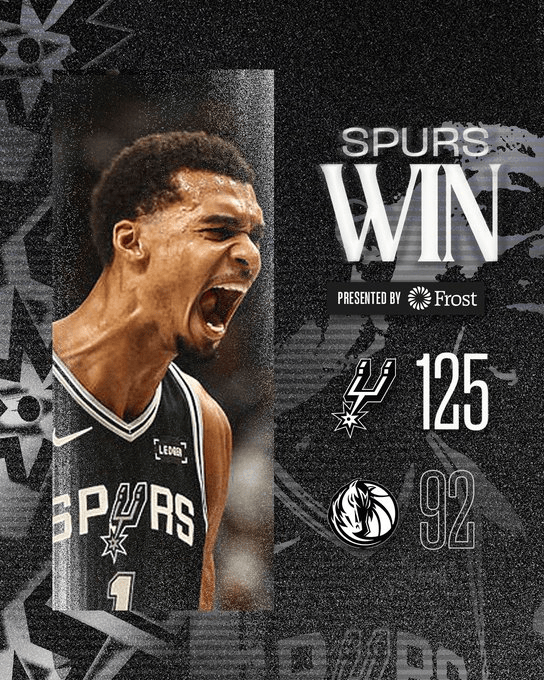 虎撲10月23日訊 今天NBA常規(guī)賽,馬刺以125-92戰(zhàn)勝獨(dú)行俠。刺官