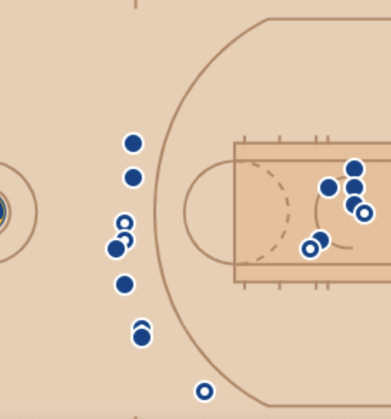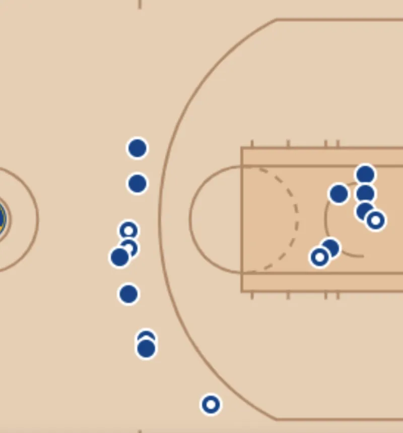 [流言板]里突外投!勇記:勇士球員的投籃圖表全是三分球和上籃