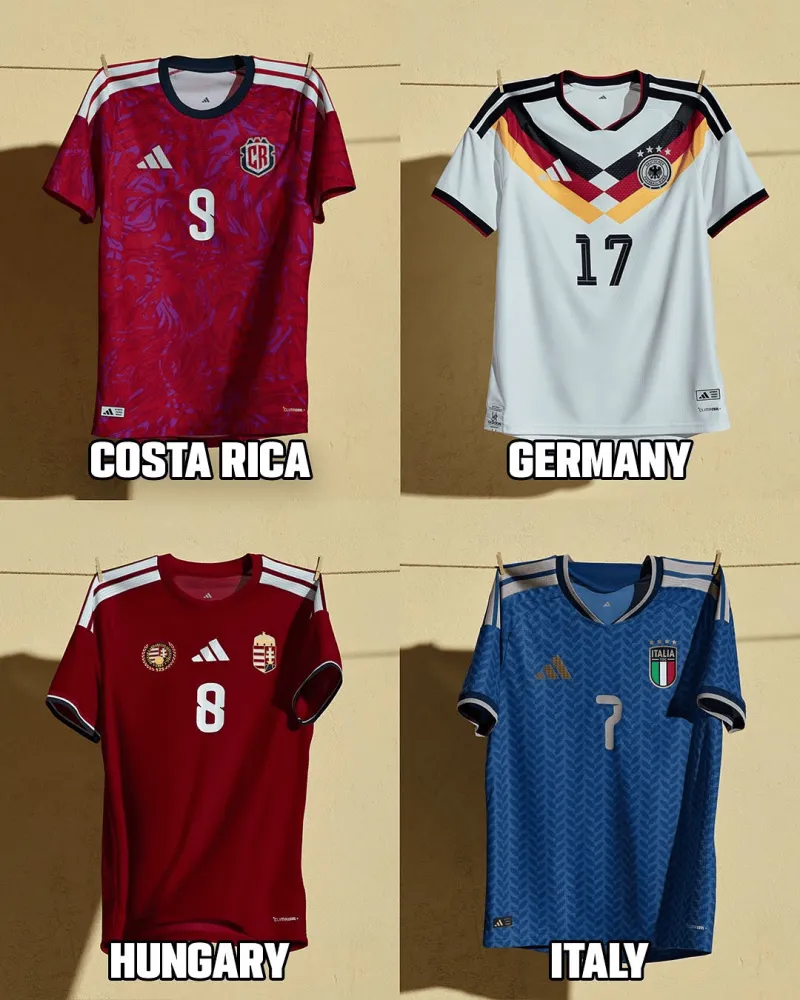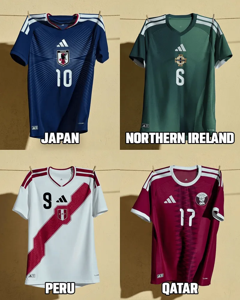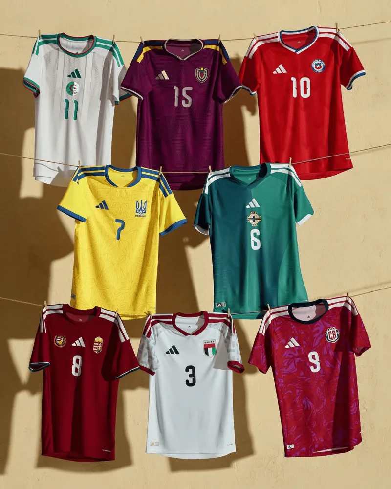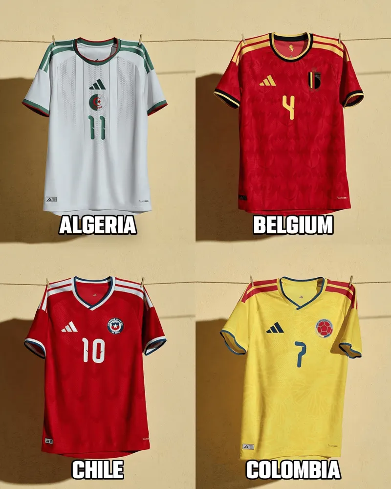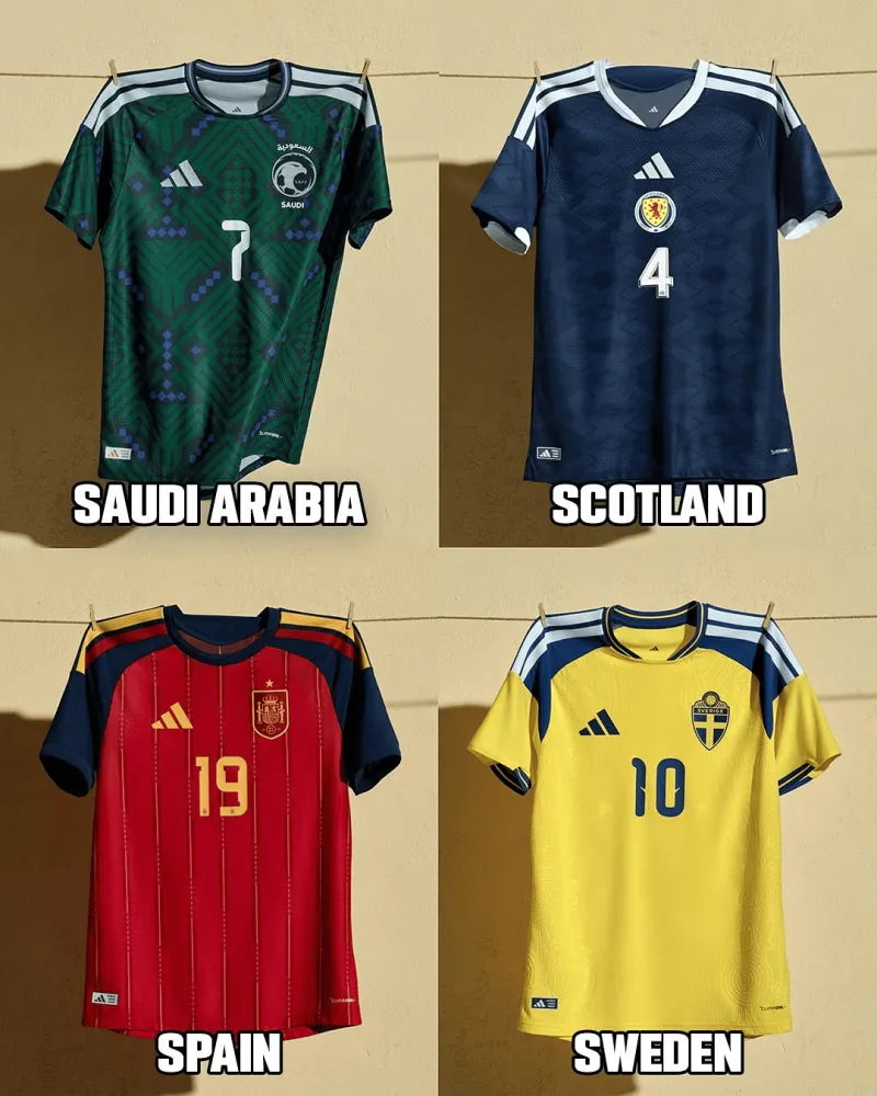 虎撲11月06日訊 adidas football更新官方社媒,展示2026FIFA美加墨世界杯22只參賽球隊的全新球衣新款主場球衣。