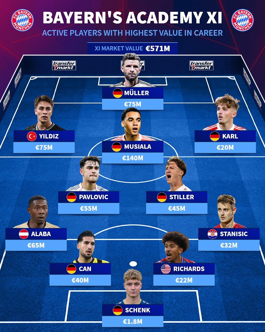 虎撲10月29日訊 德國轉(zhuǎn)會(huì)市場盤點(diǎn)了出自于拜仁青訓(xùn)的現(xiàn)役球員,并組成了一套最佳陣容。仁青