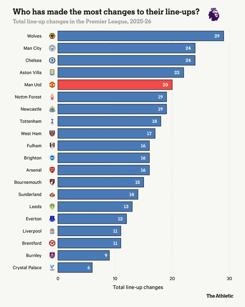 本賽季初期,阿莫林在應(yīng)對(duì)球員傷病、體能狀況及其他戰(zhàn)術(shù)挑戰(zhàn)時(shí),多次調(diào)整首發(fā)陣容。由于球隊(duì)陣容龐大,且每周僅有一場(chǎng)比賽需要備戰(zhàn),這位主教練似乎更傾向于采用 “因地制宜” 的策略,而非固定一套絕對(duì)的首發(fā)十一人陣容。